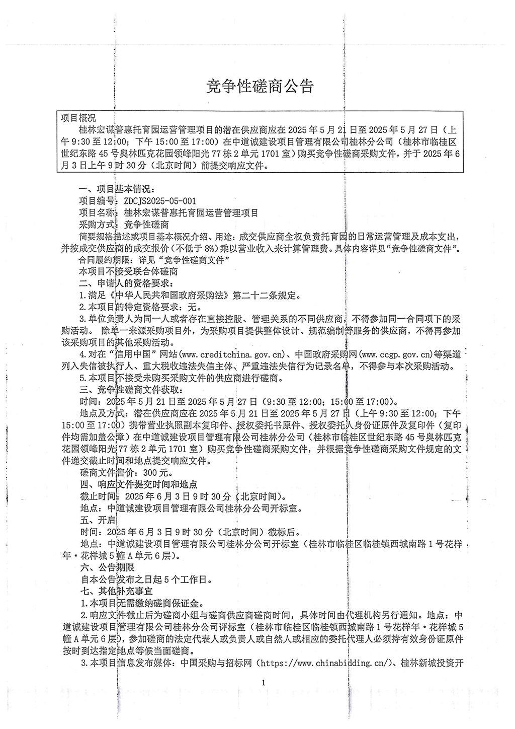 桂林宏謀普惠托育園運(yùn)營管理項(xiàng)目競爭性磋商公告